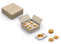 Печенье поступает через систему распределения потоков продукта. Сначала формируются стопки по две штуки печенья, и с помощью многолинейной системы готовится необходимое разделение для дальнейшей упаковки.