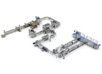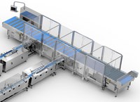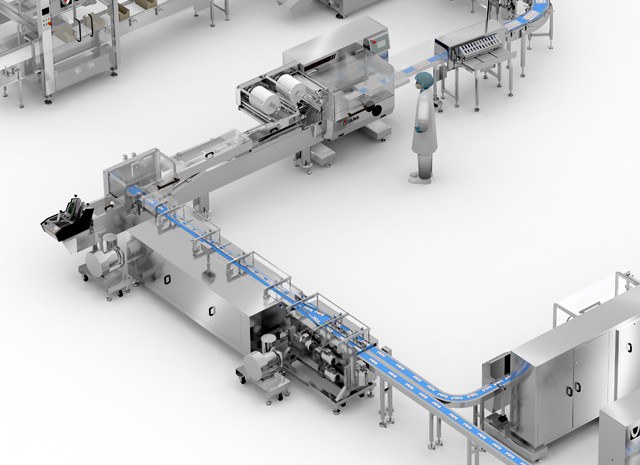 Многолинейная система подачи выполняет выравнивание батончиков для первичной упаковки и обеспечивает их точное разделение для максимизации потока и производства упаковки.