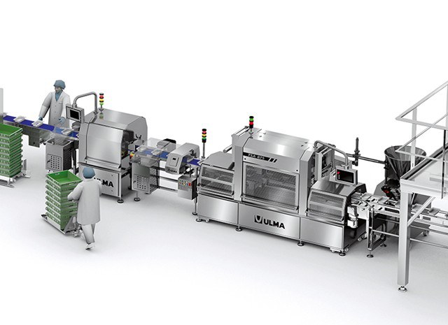 Полная линия для упаковки полуфабрикатов и готовых блюд в лотки на трейсилере