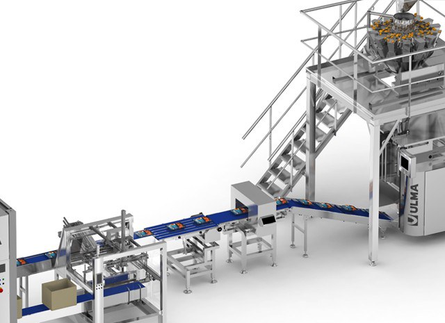 Полностью автоматизированная упаковочная линия для упаковки куриных наггетсов и продуктов в панировке