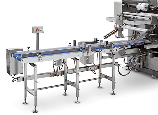 - Подающий конвейер длиной 2 м, полностью выполненный из нержавеющей стали, специально сконструирован так, чтобы его было легко мыть.