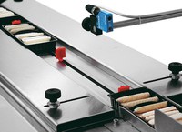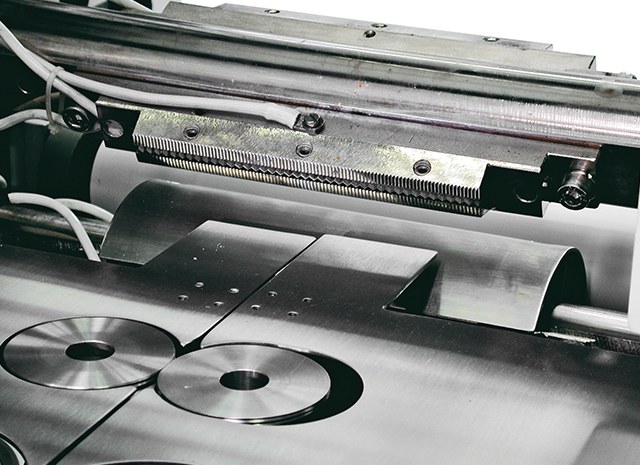 - Электронная машина с тремя независимыми сервомоторами (роторные губки, мотор размотки плёнки, подающий конвейер), которые синхронизируются многоосевым электронным контролем.