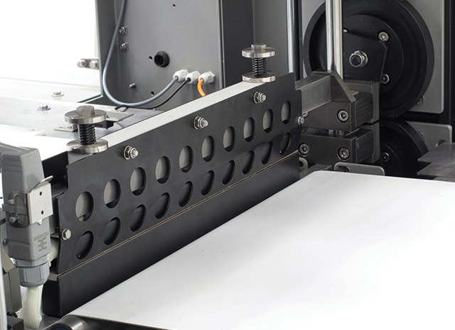 - Поперечный шов производится сварной головкой типа «Long-Dwell» со сварными губками шириной 400 мм. Система приводится безщёточным сервомотором.