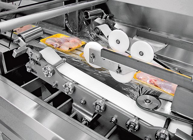 Горизонтальная поточная упаковочная машина (HFFS), которая производит полностью герметичную и водонепроницаемую упаковку с тремя швами для мяса и птицы в лотках. Специально создана для работы на термоусадочной стрейч-плёнке SES.