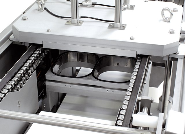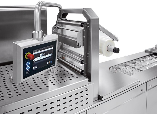 Термоформер в гигиеничном исполнении для упаковки в мягкую и в жёсткую плёнку с опциями упаковки в модифицированную атмосферу (МГС) и вакуумирования. Уровень производительности выше среднего.