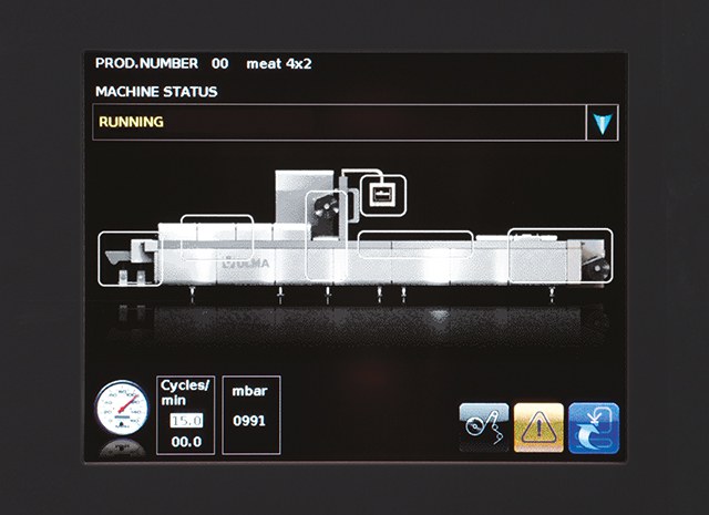 - Цветной сенсорный экран диагональю 10” для регулирования параметров машины, диагностики и отчетности
