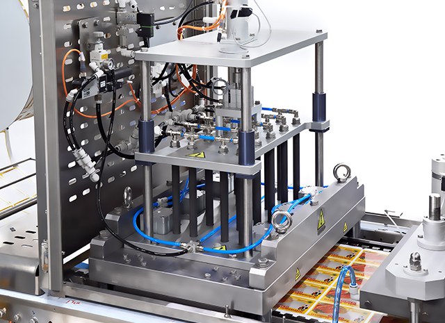Термоформер в гигиеничном исполнении для упаковки в мягкую и в жёсткую плёнку с опциями упаковки в модифицированную атмосферу (МГС) и вакуумирования.