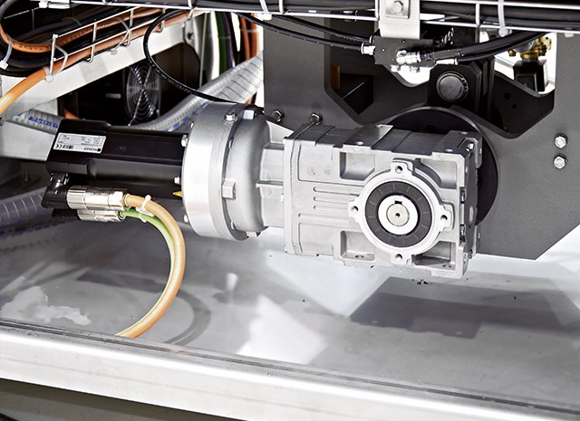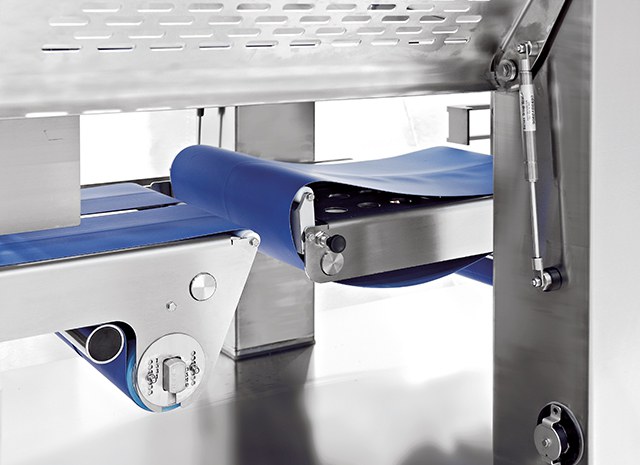- Подача и позиционирование лотков осуществляется ленточным конвейером с барабанным двигателем