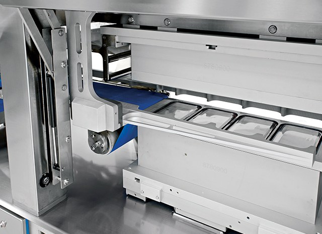 Данное оборудование разработано для интеграции в линии с производительностью выше средней или используется в процессах расположения лотков с высокой точностью. Процесс запайки может производиться в один или два ряда в зависимости от формата упаковываемого продукта.